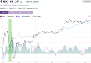 A key trading signal flashed for Northrop Grumman shares at a price of $655.32, after which NOC rose as much 4.2% to an intraday high.